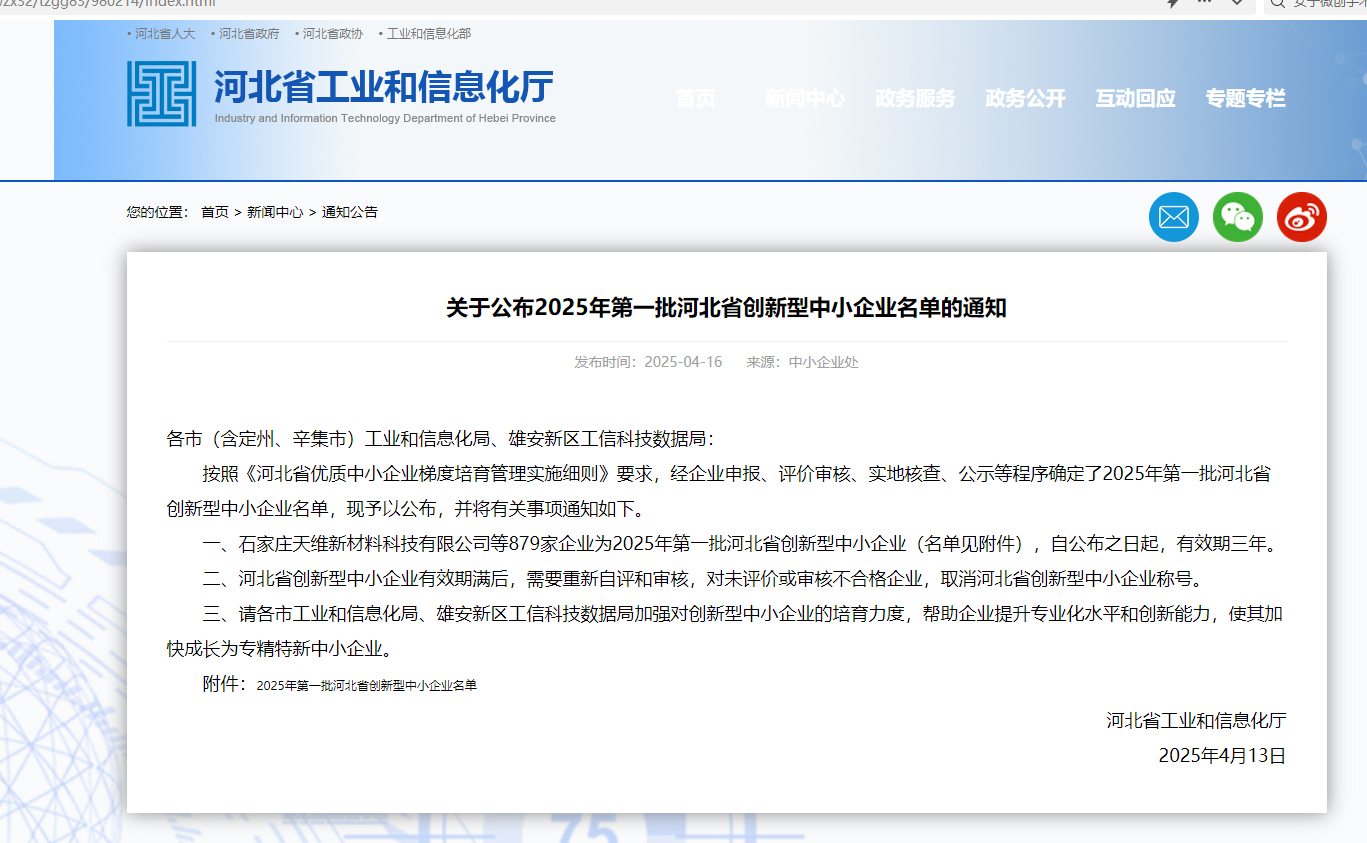近日,河北省工業(yè)和信息化廳正式公布2025年第一批河北省創(chuàng)新型中小企業(yè)名單。歷經(jīng)嚴(yán)格評審,科好特成功獲得 “創(chuàng)新型中小企業(yè)” 認(rèn)證。這是科好特企業(yè)在提高企業(yè)自主創(chuàng)新能力、走創(chuàng)新型道路的又一喜人成果,這一榮譽(yù)不僅是對科好特在專業(yè)化、精細(xì)化、特色化發(fā)展道路上成績的肯定,更標(biāo)志著公司在創(chuàng)新與高質(zhì)量發(fā)展領(lǐng)域邁上了新臺階。