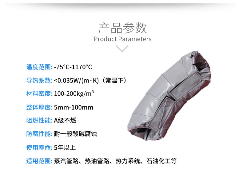 蒸汽管道保溫衣可根據(jù)不同形狀的設(shè)備量身定制各種保溫層,適用于飲料,食品,石油化工,冶金,造紙,電力等行業(yè),其材料為特殊材料,隔熱性能良好,使用壽命長(zhǎng),不易老化,大大提高了利用率和降低維修維護(hù)成本。韌性好,易于彎曲聯(lián)接。可以大大改善工作環(huán)境,降低工作環(huán)境溫度,重要的是防止工作人員出現(xiàn)意外。