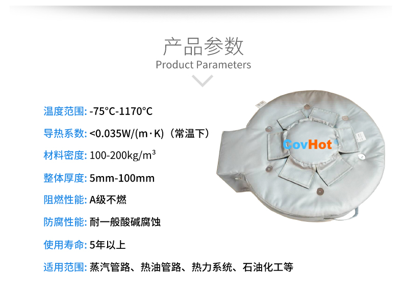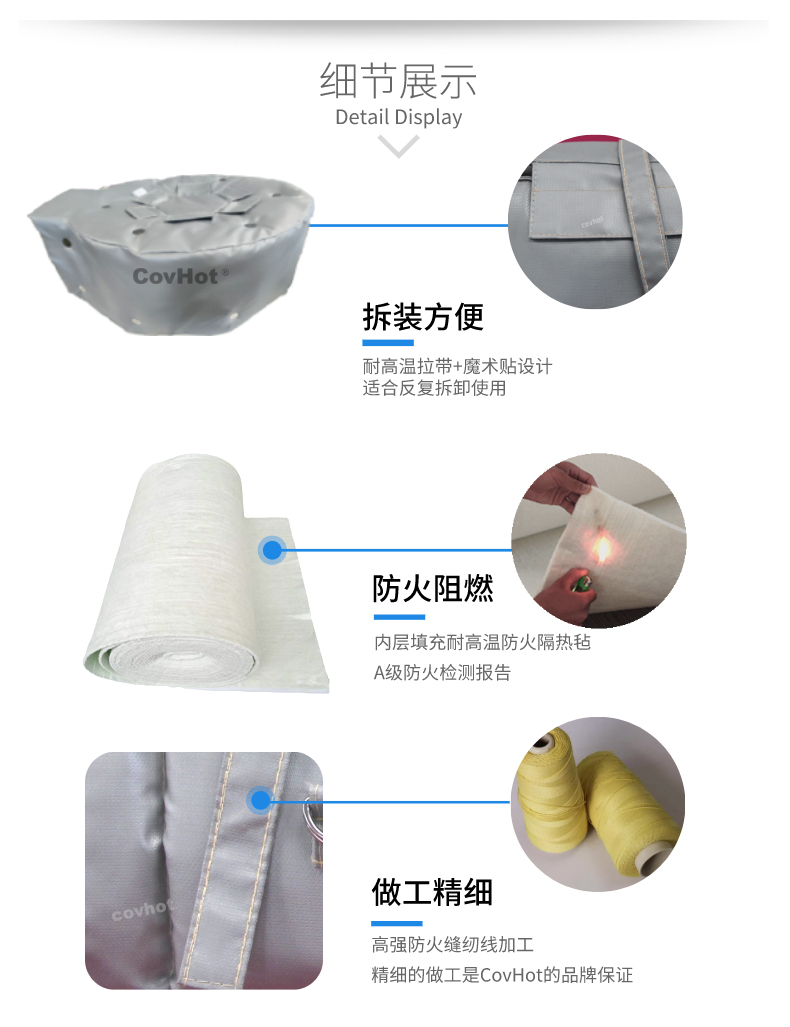 然而,如果選用可拆卸保溫套的話,這些食品生產保溫隔熱工作便不會出現上訴問題。可拆卸保溫套是根據設備的外形尺寸而量身設計制作的,安裝好后保溫隔熱效果顯著,且美觀大方。可拆卸保溫套屬于柔性制品,通常采用魔術貼或拉帶等方式搭接,具有拆裝便捷,可反復循環使用等特性。