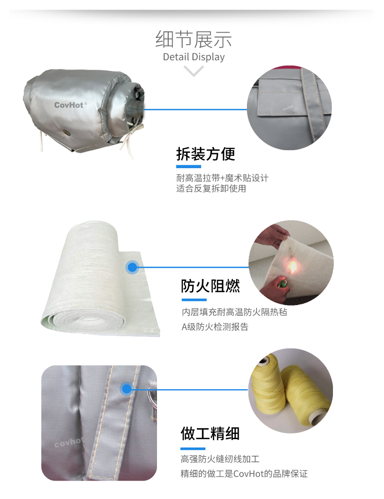 接下來為大家介紹一款非常適合Y型過濾器等異形需頻繁檢修的設(shè)備使用的可拆卸保溫套。可拆卸保溫套,顧名思義,即可以重復(fù)拆卸使用的設(shè)備保溫套,不僅保溫效果顯著,而且非常方便拆裝,無需專業(yè)人員即可在1分鐘左右完成拆裝,能夠為過濾器的檢修降低時間投入,從而避免企業(yè)由于檢修緣故反復(fù)做保溫這一難題。